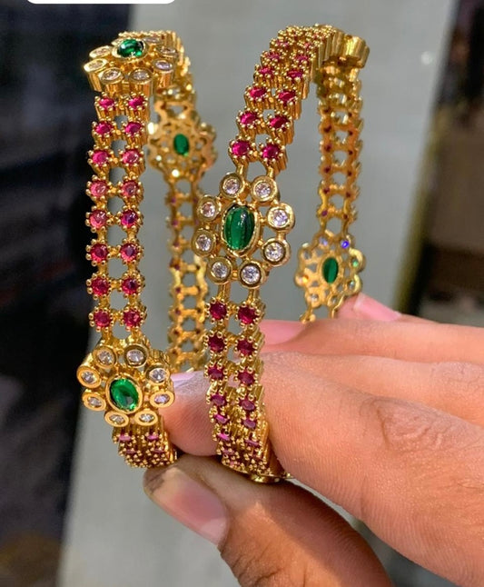 Ruby diamond Floral bangles (2pc)
