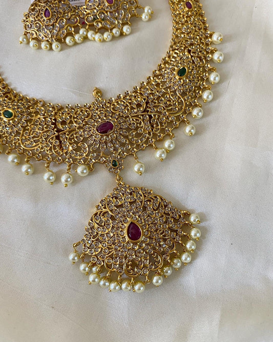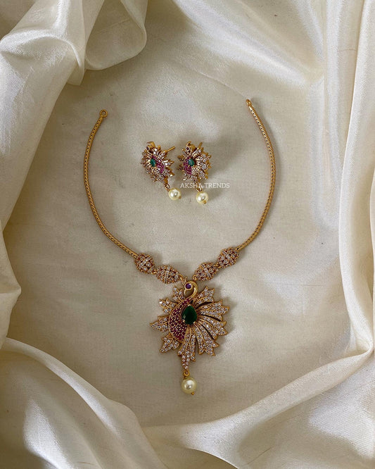 AD stone golden necklace