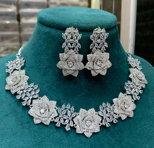 Sold outSilver floral diamond necklace